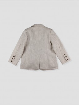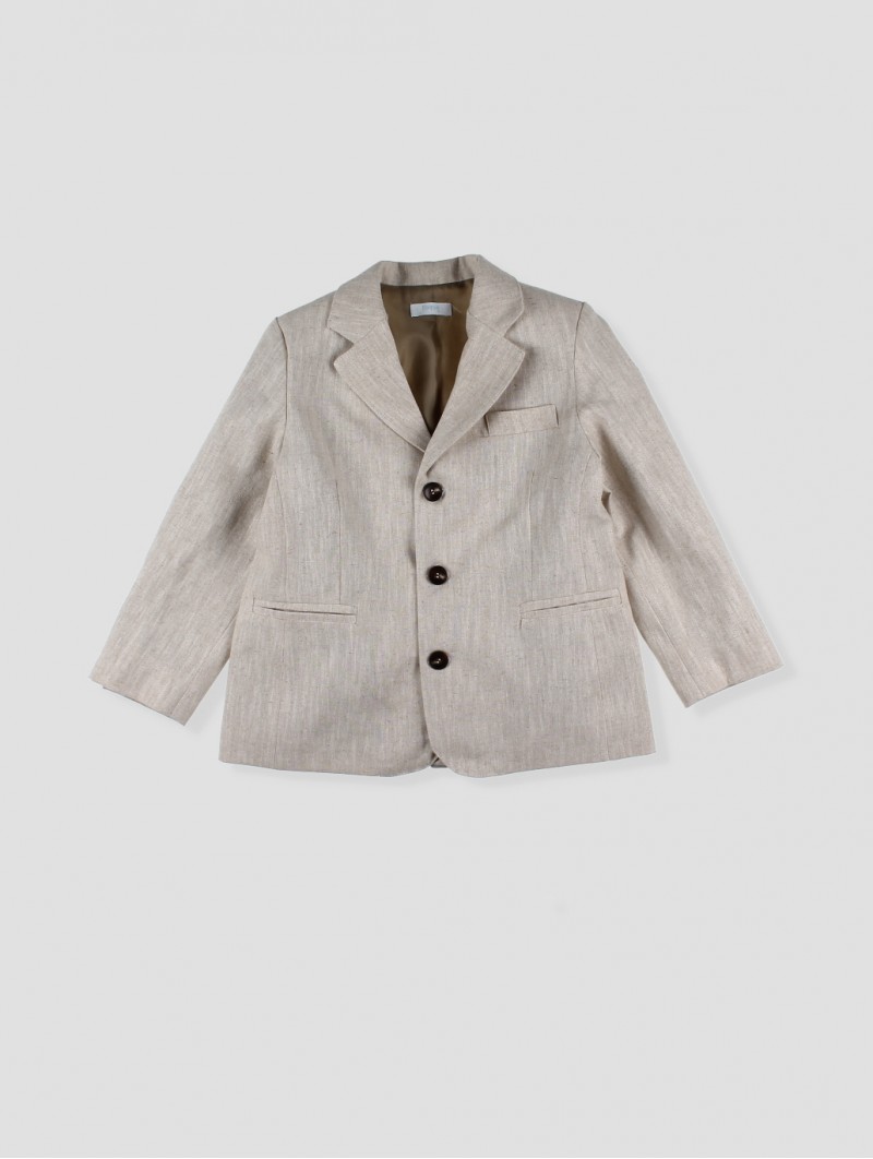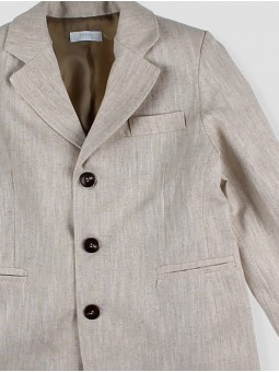 A must-have for little gentlemen. This natural-toned blazer is the perfect choice for special occasions, featuring a classic design with impeccable details. With a structured lapel, three-button closure, and refined welt pockets, it offers a sophisticated and timeless look. The lightweight fabric ensures comfort and versatility, making it ideal for formal events or adding an elegant touch to casual outfits. Made in Spain with the signature quality and style of FOQUE