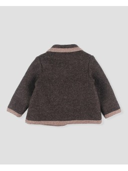 This baby boy coat blends tradition and style in a warm and comfortable piece, perfect for winter. It features a delicate baby collar finished with contrast piping, and a double-breasted closure with elegant metal buttons. Contrast trims on the collar, cuffs and pockets enhance its refined design. A versatile garment, ideal for both special occasions and everyday wear. Available in various colours. Made in Spain