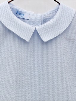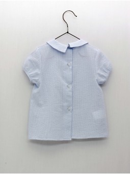 Short-sleeved baby boy's batista sersucker shirt with shirt collar and button fastening on the back. Seahorse Collection, complete the look with the reference 2315836 white pants and the cotton sweater with seahorse drawing from the same collection. Made in Spain