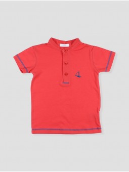 Boy's polo t-shirt in aqua green cotton with a Mandarin collar and front buttons, offering a fresh and elegant style perfect for summer days. Its design features an exclusive embroidered Foque sailboat detail. Made from soft cotton, it ensures comfort and breathability so little ones stay at ease at all times. Ideal for pairing with canvas shorts from our collections. Made in Spain