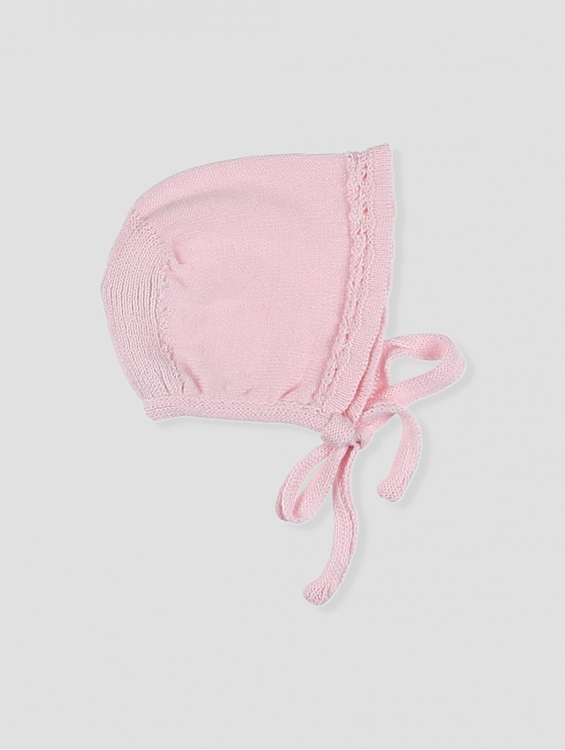 Full baby bonnet for boys and girls, knitted in smooth cotton with openwork detailing at the start and a matching knit tie, pair it with pieces from the La Toscana collection, made in Spain