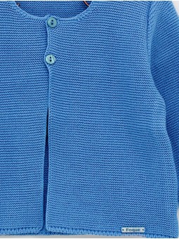 Long baby boys’/girls’ basic jacket in garter stitch. Sizes from 0 to 6 years. Available in various colours. Made in Spain.