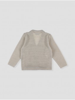 Boys' knit jacket in blazer style with a shawl collar, front button fastening, and faux pockets, in a stone color, a practical and elegant piece for your little one's outfits, available in sizes from 12 months to 6 years, part of the Marsella collection, made in Spain
