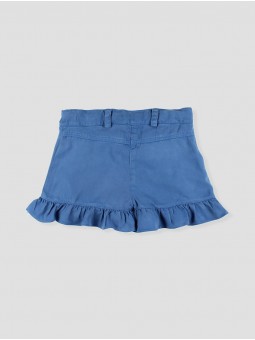 Youthful girls' shorts featuring playful ruffle accents on the sides for a distinctive style. Made from lightweight, soft fabric, they offer exceptional freedom of movement. The adjustable waistband ensures a comfortable fit, perfect for playtime or summer strolls. Easy to pair with tops or T-shirts for sunny days. Made in Spain