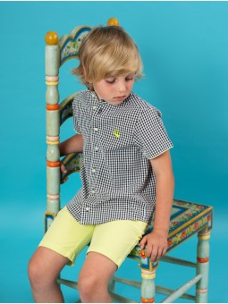 Boy’s checkered shirt with a fresh, stylish design. This timeless piece features modern details such as a mao collar and the iconic FOQUE sailboat embroidery on the chest. Short sleeves with neon yellow piping add a playful, contemporary touch. Versatile and ideal for summer outings or casual gatherings, it pairs effortlessly with shorts or light trousers. Made in Spain