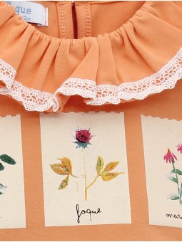 T-shirt with ruffle collar highlighted with lace. Flower pattern and bands in the sleeves. Back fastening. We love to combine T-shirts with our swinmwear pieces from the Gingham collection. Shocking! Diseñado en España.waistbands. Designed in Spain.