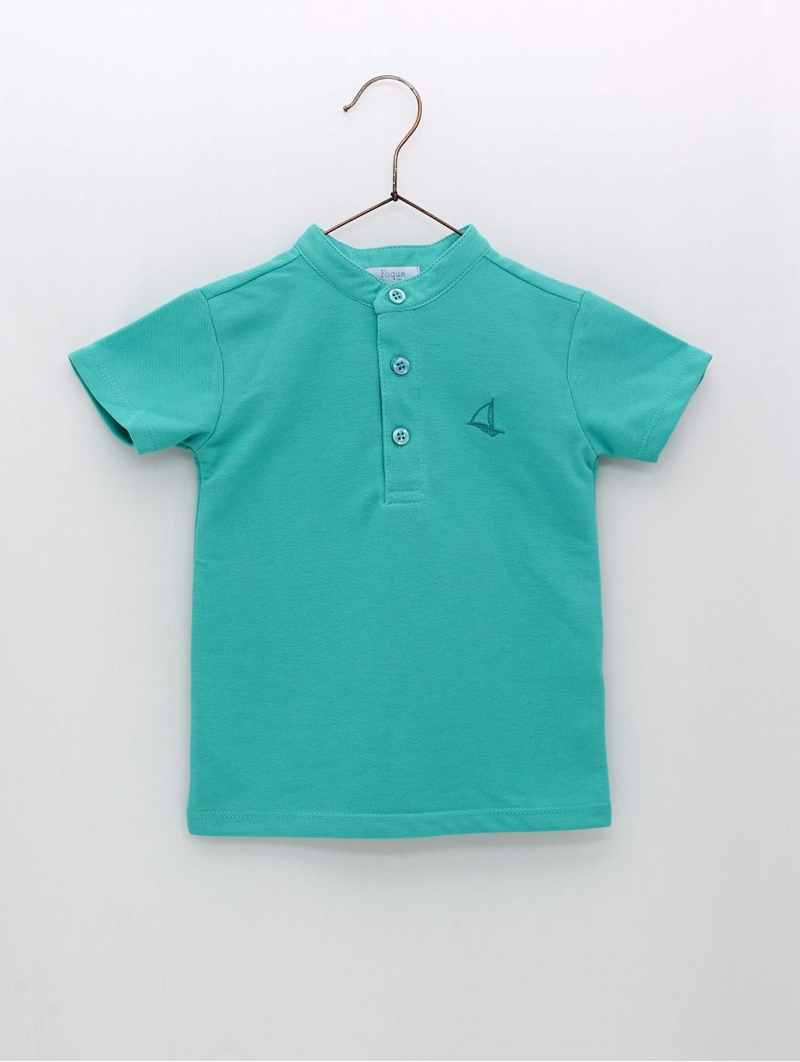 Short-sleeved polo shirt for boys, made of 100% cotton fabric, and with a mandarin collar. Available in various colors. Combine it with the dungarees, trousers and with our Foque Bath collections, have you seen them? Made in Spain
