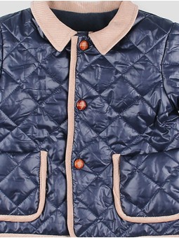 Abrigo acolchado para niño con pespunte en rombos, ideal para los meses más fríos. Presenta un elegante cuello de pana beige y vivos a contraste que realzan el diseño. El cierre frontal con botones de madera y los bolsillos de parche ribeteados completan esta prenda clásica con aire renovado. Perfecto para combinar con los looks de nuestras colecciones Foque y garantizar abrigo sin perder estilo. Un básico cálido y duradero, ideal para el día a día. Hecho en España