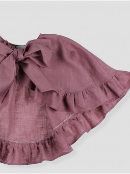 Añade un toque sofisticado y original al look de tu pequeña con esta preciosa capa de volantes. Su diseño envolvente con lazo decorativo en el cuello la convierte en una prenda única, ideal para ocasiones especiales. Los delicados volantes aportan movimiento y un aire romántico, mientras que su tejido ligero garantiza comodidad y libertad de movimiento. Disponible en varios colores. Es el complemento perfecto para vestidos de ceremonia. Hecho en España