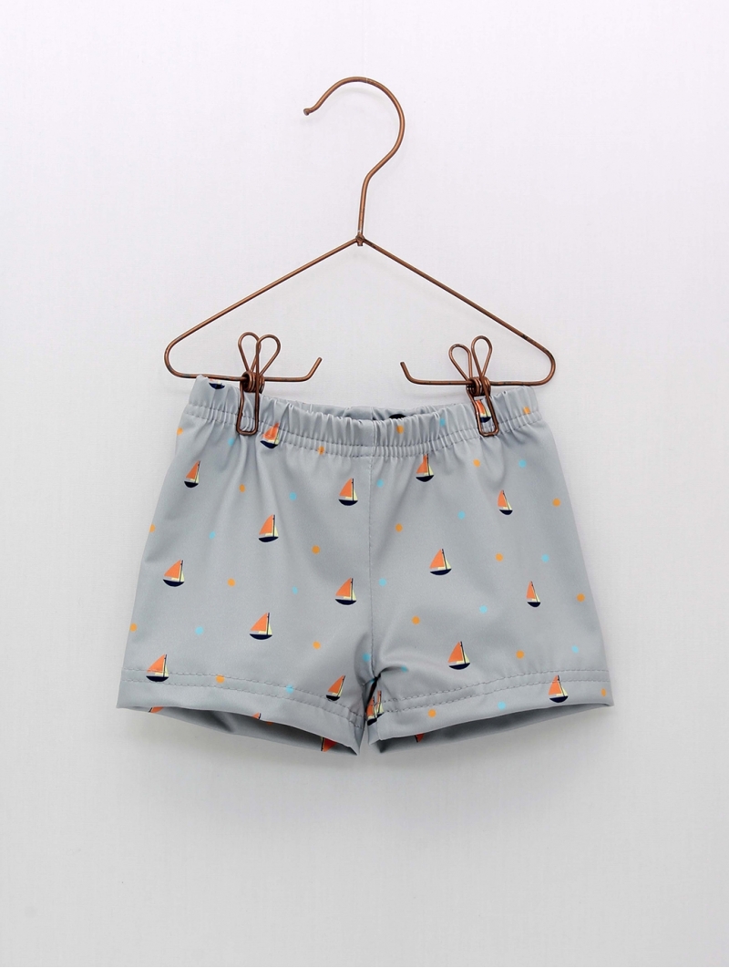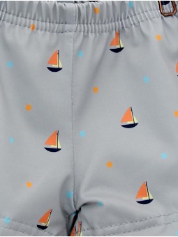 Boxer bebé niño en tejido de lycra estampado veleros. Tallaje de 0 meses a 6 años. Colección Baño Marinero. Combínalo con el polo referencia 2316406 en color albaricoque, perfecto para ir a la playa o la piscina. Hecho en España