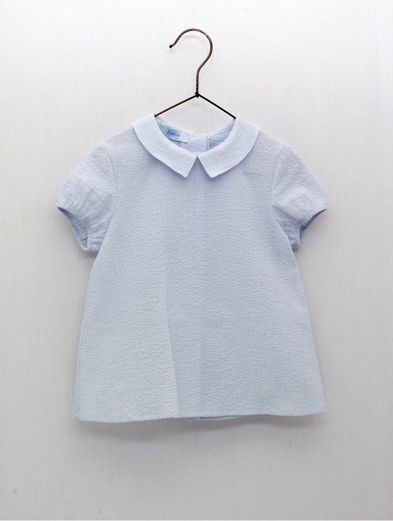 Camisa manga corta bebé niño batista sersucker cuello camisero y botonadura en la espalda. Colección Caballito de Mar, completa el look con el pantalón referencia 2315836 color blanco y el jersey de algodón con dibujo caballito de mar de la misma colección. Hecha en España
