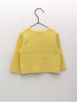 Chaqueta básica para niño-niña larga de punto bobo con escote redondo, abrocha con dos botones en el delantero. Lleva una chapa rectangular corporativa Foque en la cintura. Disponible en varios colores para que puedas combinarla con nuestras colecciones. Hecha en España.