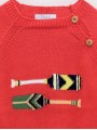 Jersey unisex confeccionado en hilatura 100% algodón en punto liso, color rojo/fresa, con cuello redondo, manga ranglan con apertura en el hombro donde abrocha con botones y dibujo en el delantero de unos remos de madera. Combínalo con las prendas de la misma Colección Flora, el conjunto referencia 2414930 o con el peto referencia 2415973, acertarás. Diseñado y confeccionado en España.