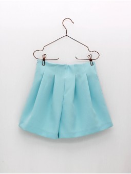 Short niña con pinzas efecto falda-pantalón, cierre con cremallera invisible. Disponible en color turquesa y rosado. Tallaje de 4 a 16 años. Colección Lily