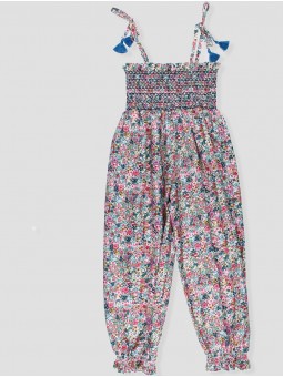 Mono largo para niña es la prenda perfecta para los días cálidos. Confeccionado en un tejido ligero y fresco, presenta un encantador estampado floral y un cuerpo smock elástico que se adapta cómodamente. Los tirantes finos ajustables, rematados con lazos y borlas decorativas, permiten un ajuste personalizado. Los bajos fruncidos con volante aportan un toque coqueto y femenino. Ideal para paseos veraniegos o escapadas a la playa, es una opción versátil y cómoda para cualquier ocasión especial.