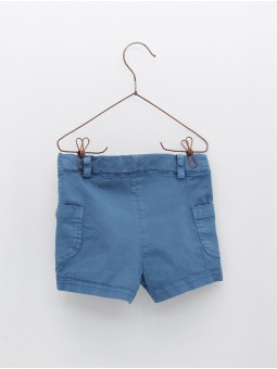 Pantalón corto bebé niño tejido loneta con goma cintura ajustable. Bolsilos de plastón laterales con botón de madera Foque. Posibilidad de colores