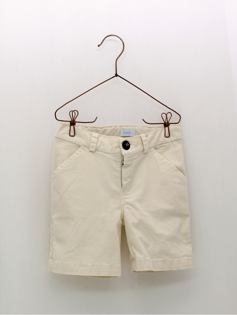 Pantalón corto tipo chino para niño, confeccionado en tejido de loneta mezcla de algodón con un pequeño porcentaje de elastano. Cintura ajustable. Tallaje de 2 a 14 años. Disponible en varios colores. Combínalo con nuestras camisas, polos, jerséis y sudaderas. Hecho en España.