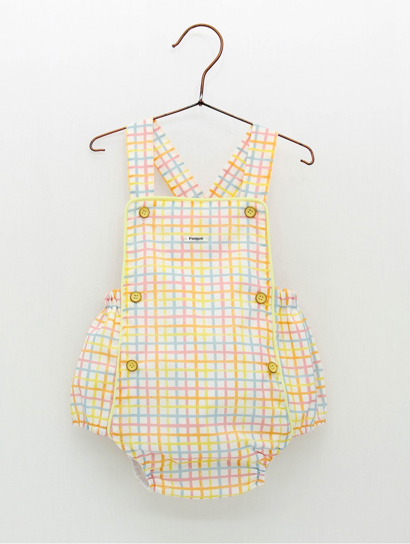 Ranita peto con tirantes para bebé niño confeccionado en tejido cuadro multicolor 100% algodón, botones en delantero para una mejor puesta. Colección Juliette. Tallaje de 0 a 36 meses. Hecha en España