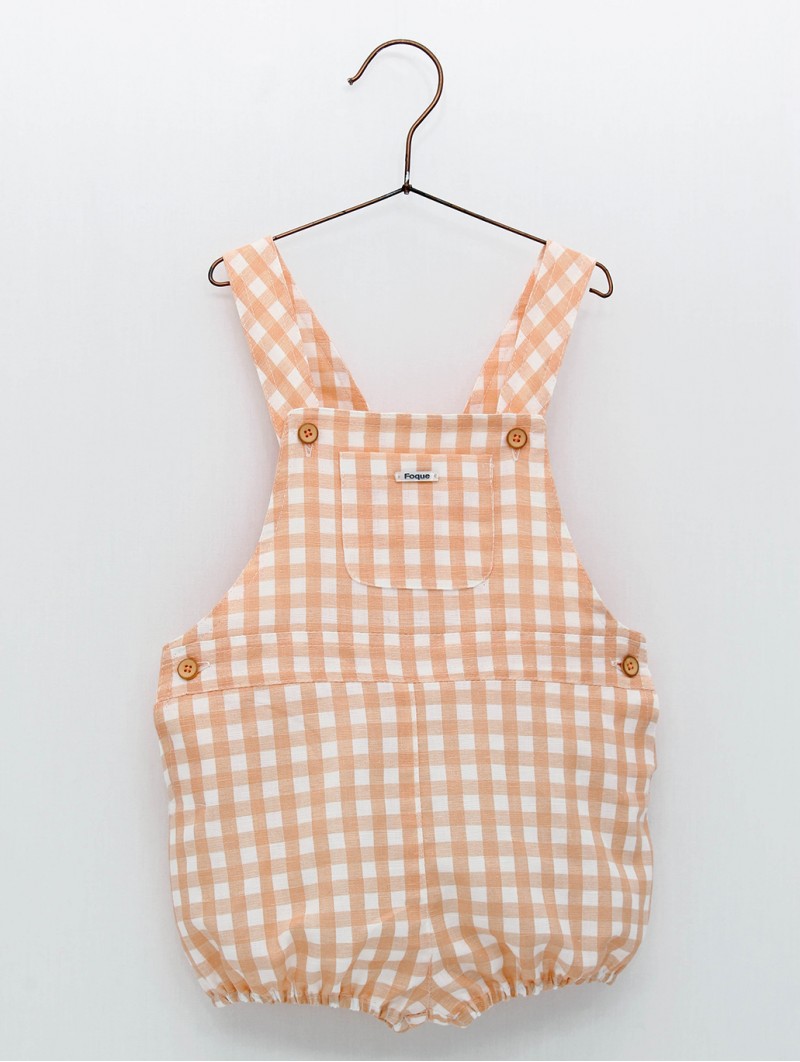 Peto bebé niño confeccionado en tejido de cuadros mezcla lino y algodón. Colección Nana. Tallaje de 0 a 36 meses. hecha en España.