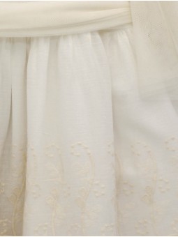 Vestido niña de gasa con greca bordada mangas y cinturón de tul con lazada en la espalda. Colección Betania. Ideal para eventos, disponible en varios colores. Hecho en España