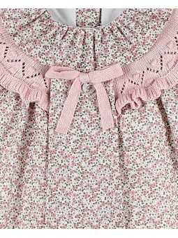 Este vestido para niña destaca por su delicado estampado floral en tonos rosa empolvado, ideal para los días de otoño. El cuello de punto a contraste, con volante y lazada central, aporta un toque romántico y actual. Las mangas abullonadas rematan el conjunto con suavidad. Pertenece a la colección Ladera y combina a la perfección con los zapatos Pisamonas para un look encantador y muy Foque. Hecho en España