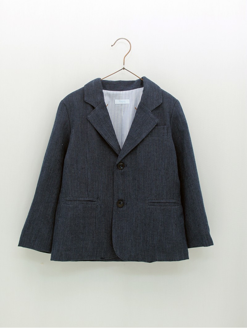 Americana criança em cor azul marinho com dois botões ao tom e bolsos, interior forrado com tecido mil listras celeste. Combina com as nossas calças e camisas da Coleção Dante. Senta fenomenal, não o duvides!. Feita na Espanha