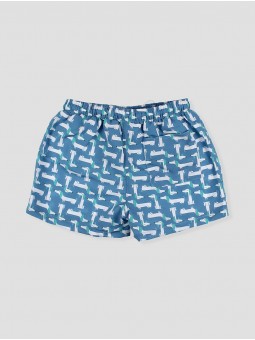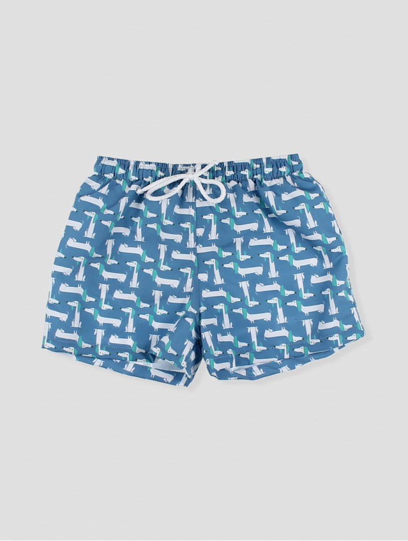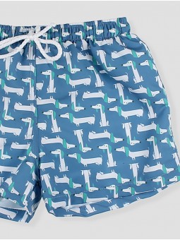 Bañador para criança com um divertido estampado de perritos sobre um vibrante fundo azul. O seu desenho com cintura elástica e cordão ajustable garante um ajuste perfeito, permitindo total liberdade de movimento. Confecionado em tecido de secado rápido, é a opção ideal para desfrutar de longas jornadas na praia ou a piscina. Prático, resistente e cheio de personalidade, este bañador será um imprescindível no armário de verão dos mais pequenos. Facto na Espanha