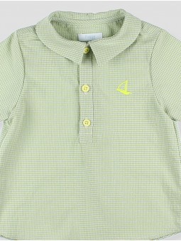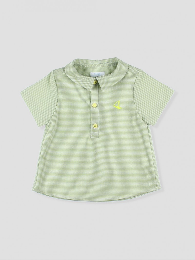 Camisa de criança em quadro vichy verde, confecionada em uma mistura de 60% algodão e 40% poliéster, que garante macieza e resistência. Apresenta um pescoço clássico, bordado de velero Foque no peito e tapeta de botões à frente. Ideal para dias ensolarados, o seu tecido ligeiro e transpirável mantém aos pequenos frescos e cómodos. Perfeita para eventos familiares ou atividades ao ar livre. Combina com a calça da mesma coleção Havana. Facto na Espanha.