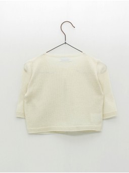 Jaqueta para criança, 100% hilatura de algodão cru de corte longo em ponto liso, manga francesa e fechamento com um único botão no pescoço. Desenhada e confecionada na Espanha.