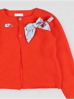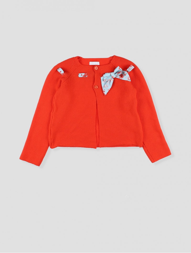 Dá-lhe um toque especial a qualquer conjunto com esta jaqueta de ponto para criança. O seu desenho clássico realça-se com um delicado laço de teia estampada no ombro, contribuindo um detalhe distintivo e elegante. Confecionada em um tecido suave e confortável, conta com um prático fechamento de botões e um ajuste perfeito. Ideal para completar looks de cerimónia ou dar um ar sofisticado ao dia-a-dia. Facto na Espanha.