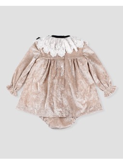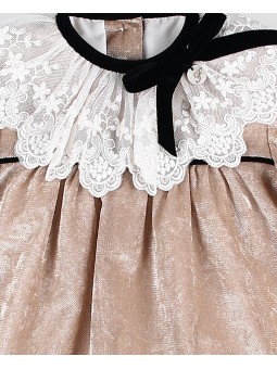 Este encantador jesusito em tul de terciopelo destaca pela sua textura brilhante e tacto sedoso, perfeito para vestir em celebrações e datas assinaladas. O pescoço de encaixe alvo de inspiração romântica emoldura o rosto com doçura, realçado por uma fina lazada negra de terciopelo. A manga longa ligeiramente franzida e os detalhes de pasamanería contribuem um ar sofisticado e atemporal. Com cuequinha a jogo incluída, é uma proposta ideal para as festas navideñas. Facto na Espanha